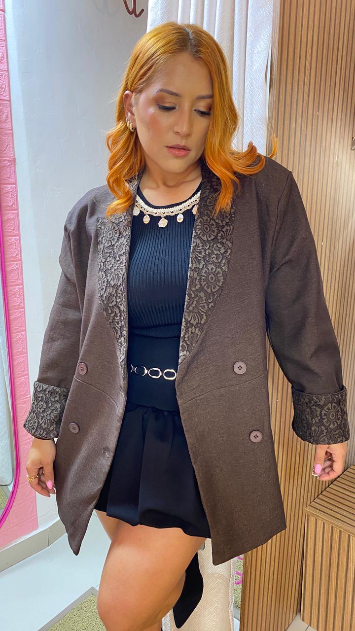 Blazer Elaborado En Lino Licrado, Viene Todo Forrado, Detalle De Encaje En Solapa & Forro Puño, Talla Unica – Horma Oversize Se Ajusta Hasta Un XL
